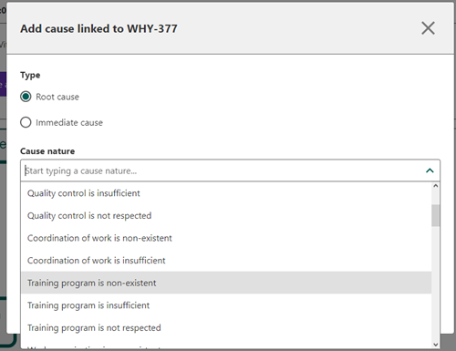 choose either to proceed with 5Why analysis or to link a cause to this item