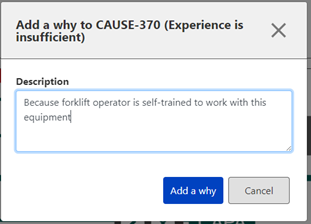 option and fill up the description by answering to question “Why this cause (or this fact) happened?”