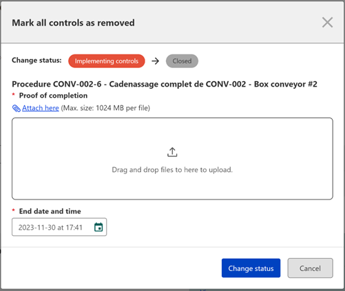 Similar questions: How to close the intervention in Web interface? Where to upload the proof of completion after controls have been removed from energy isolating devices?