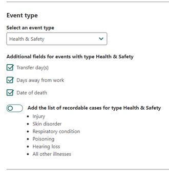 & Safety, Environment, Material damage and the Customizable type (which may have different names, since it's customizable).