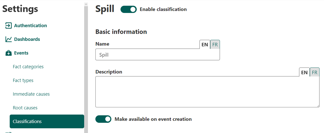 to the classification “Spill” or any other classification that you have