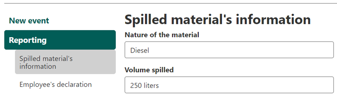 Activate the “Spilled material’s information” section