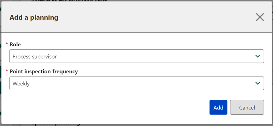 form. Specific planning is done in the end of Inspection Point field. Clicking
