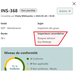 possibilité d'ajouter des inspecteurs - d'autres travailleurs qui ont participé