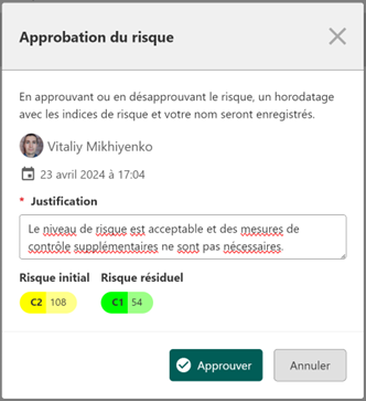 dans la liste qui doit être approuvé/désapprouvé en cliquant sur l'ID du risque