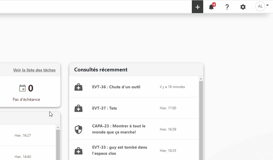 ou via le bouton d’accès rapide () de création en haut à droite de l’écran :