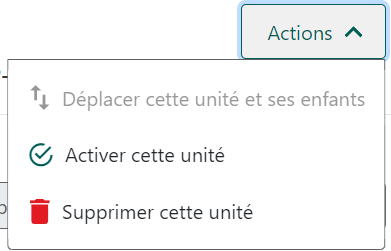 qui permet d’accéder à la structure des unités des machines qui est l’arbre organisationnel des emplacements et des machines qui existe dans cette unité organisationnelle. Repérer et sélectionner l’unité (machine ou emplacement) dont on souhaite désactiver, réactiver ou supprimer (utilisez la barre de recherche pour faciliter la recherche