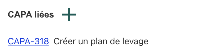 Remarque : il est possible de créer plusieurs CAPAs pour une même non-conformité identifiée ainsi que de lier une CAPA à plusieurs non-conformités.
