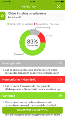 Si des questions de l'inspection n'ont pas été répondues, il sera impossible de soumettre l'inspection. Pour accéder aux questions non- répondues, voir : Comment naviguer entre les questions ?