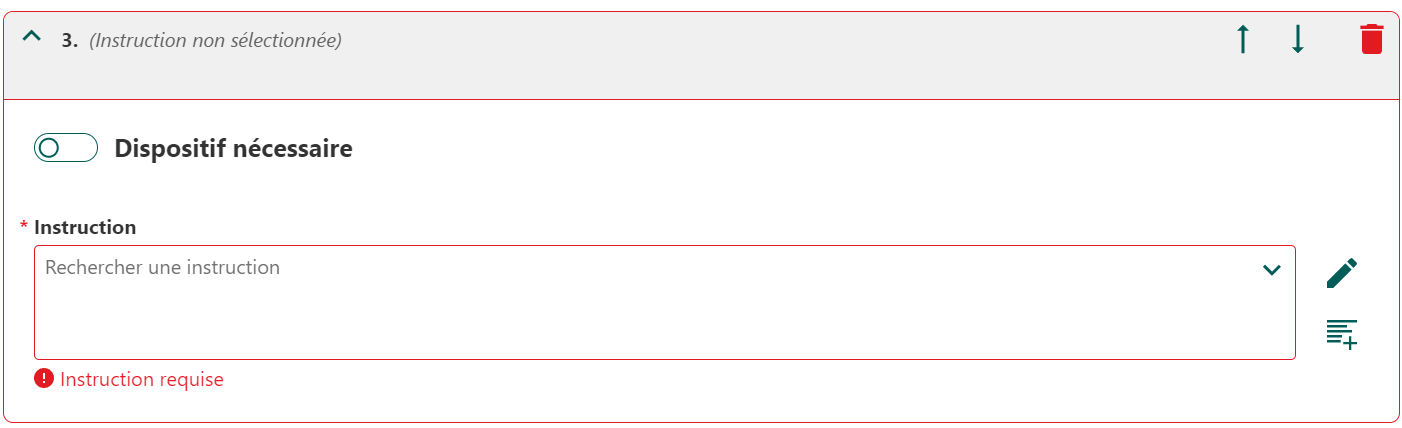Si cette instruction ne figure pas dans la liste, cliquer sur pour en créer une instruction. Taper l’instruction dans la fenêtre ouverte et confirmer en cliquant sur